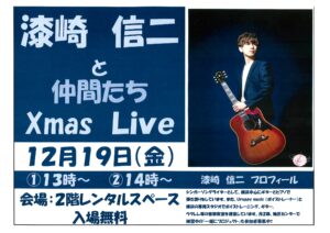 Xmas Live 漆崎信二 と仲間たち🎵 漆崎信二:シンガーソングライターとして、横浜中心にギターとピアノで弾き語りをしています。また、Uruppy masic(ボイストレーナー)と横浜の専用スタジオでボイストレーニング、ギター、ウクレレ等の音楽教室を運営しています。月2回、地区センターで練習中の「一緒にプロジェクト」も参加募集中❣❣ 2025年12月19日(金)➀13:00~ ②14:00~ 会場:2階レンタルスペース 入場無料